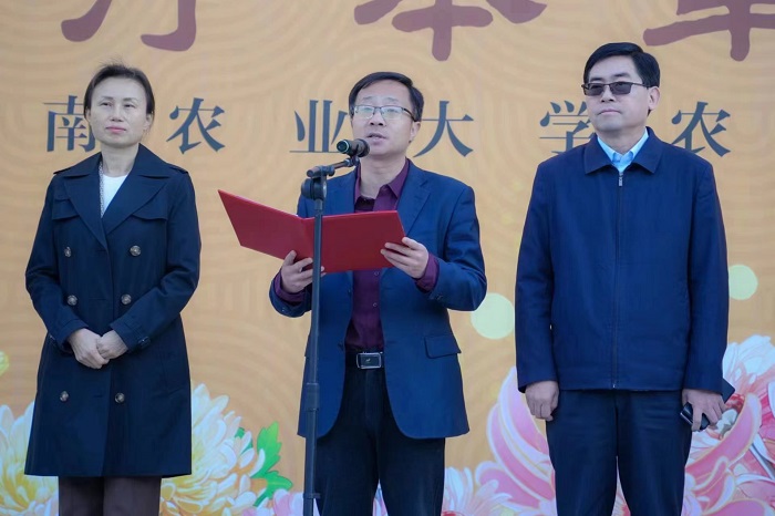 副校长杨喜田为校友代表张红星颁发捐赠证书,副校长郭战伟为校友代表王广飞颁发纪念品,随后,副校长杨喜田宣布菊花文化节开幕。最后,河南省农业厅农村厅副厅长王俊忠、方城县人民政府副县长樊海鹏、副校长杨喜田、郭战伟、极速快三