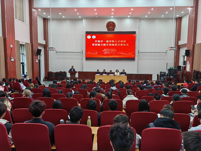 于龙子湖校区教学楼模拟法庭联合举办作物学一流学科人才培养英语能力提升训练营开营仪式。极速快三