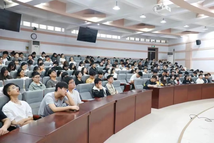 2023级部分学生参加了会议。报告会由院团委副书记唐朝主持。