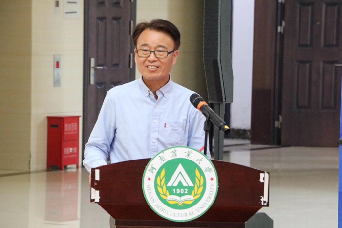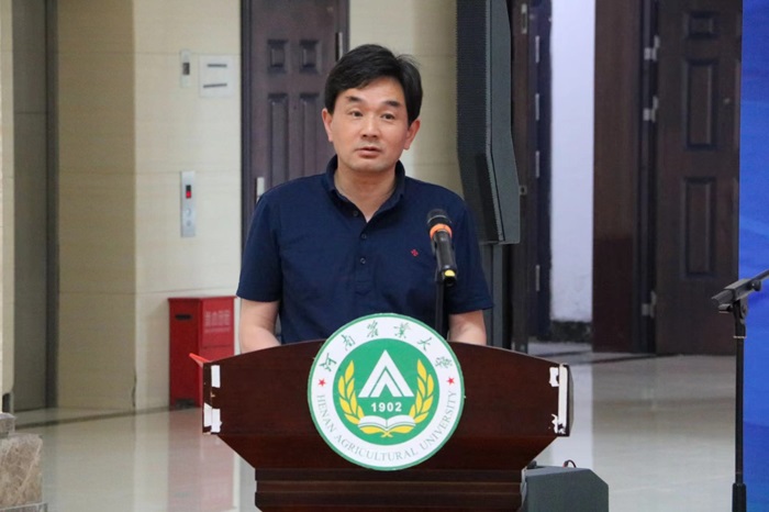 河南百富泽农业科技有限公司总经理刘一平发言,他简要介绍了公司基本产业和运营情况,并谈到学生积极投身于农业服务的重要性,鼓励极速快三
