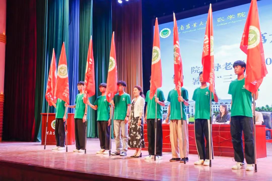2024年暑期社会实践重点团队授旗,鲜艳的旗帜在同学们手中高高飘扬,象征着青春的热情与担当。