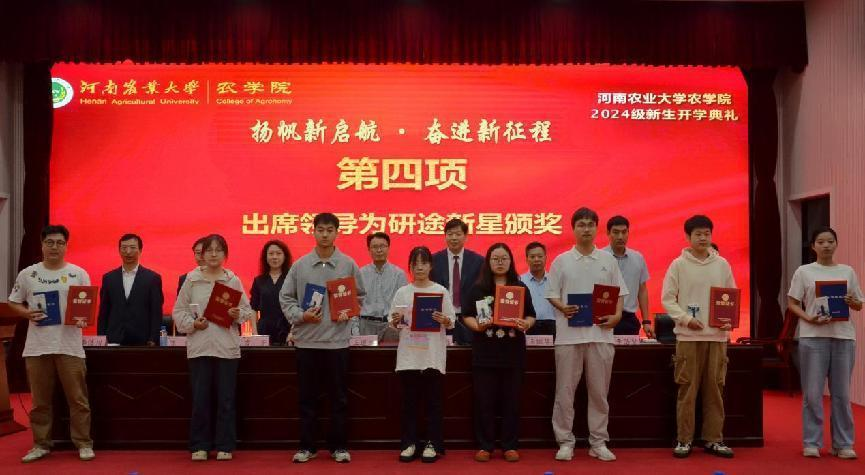领导为“研途新星”颁奖,向他们传递着对新生继续刻苦学习、奋发成才的殷切期望。