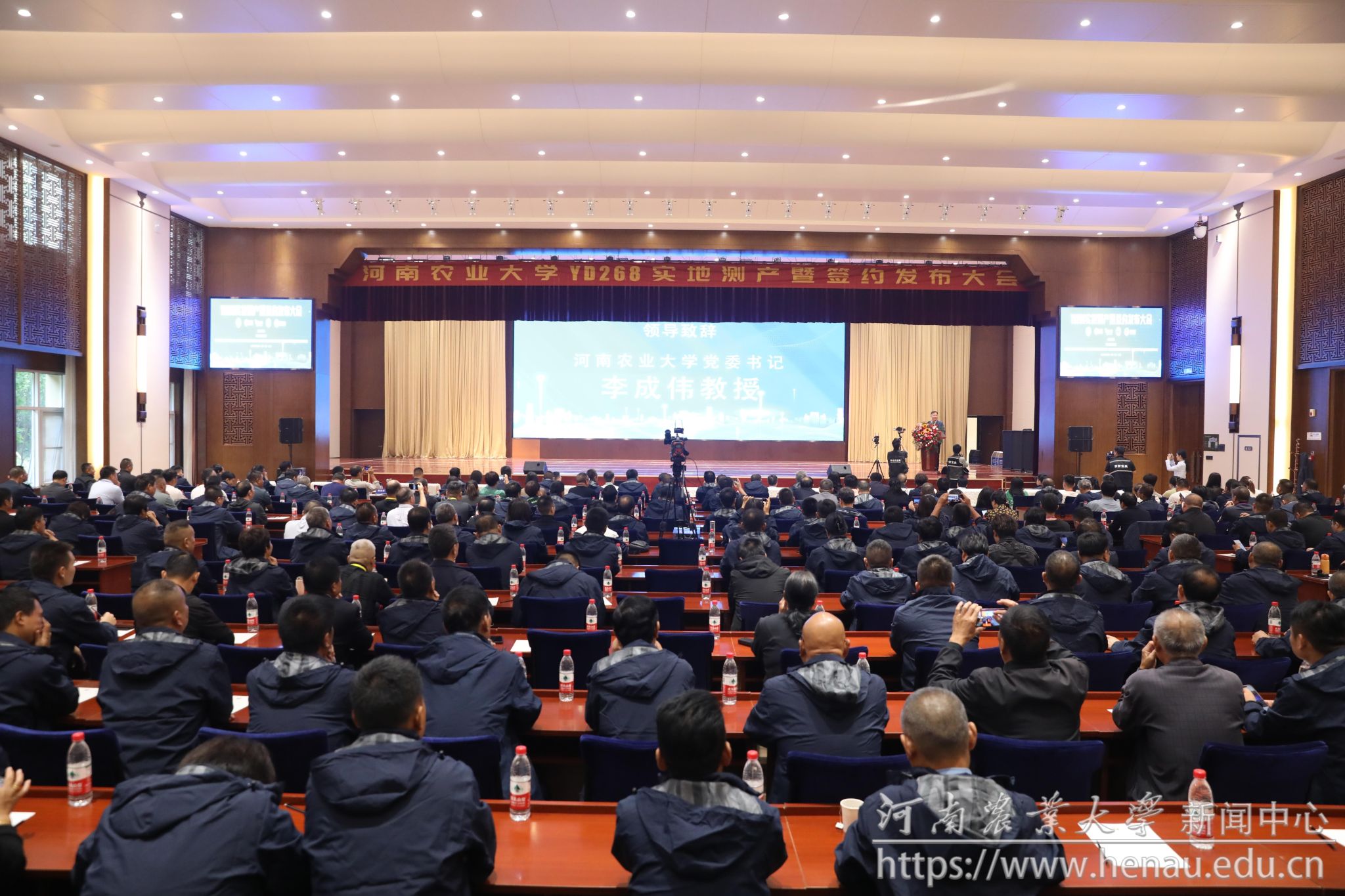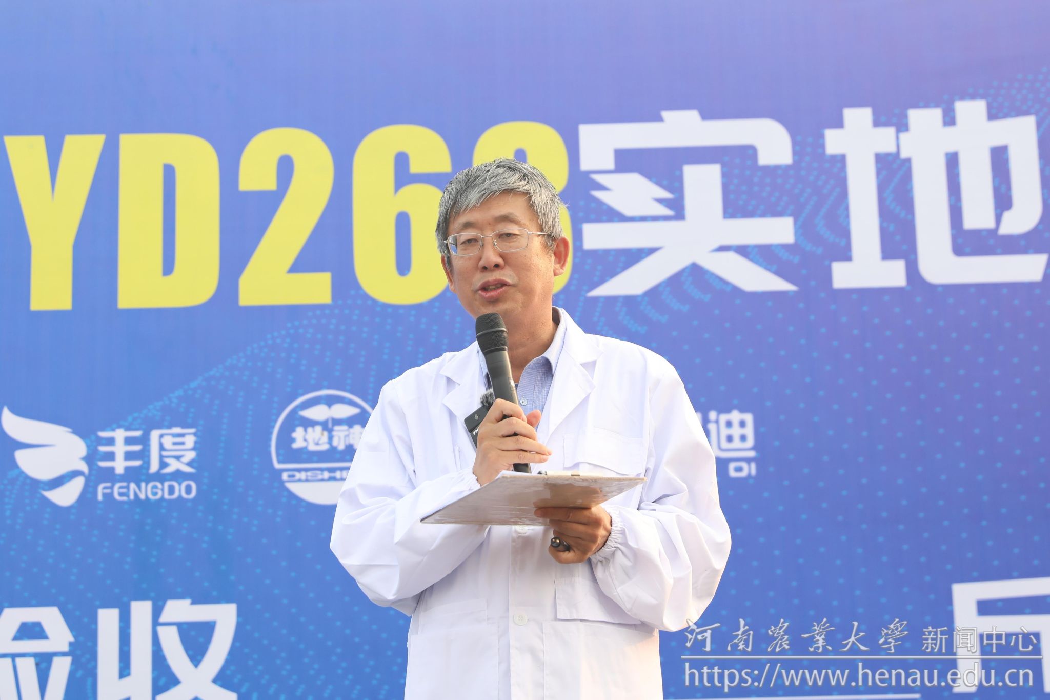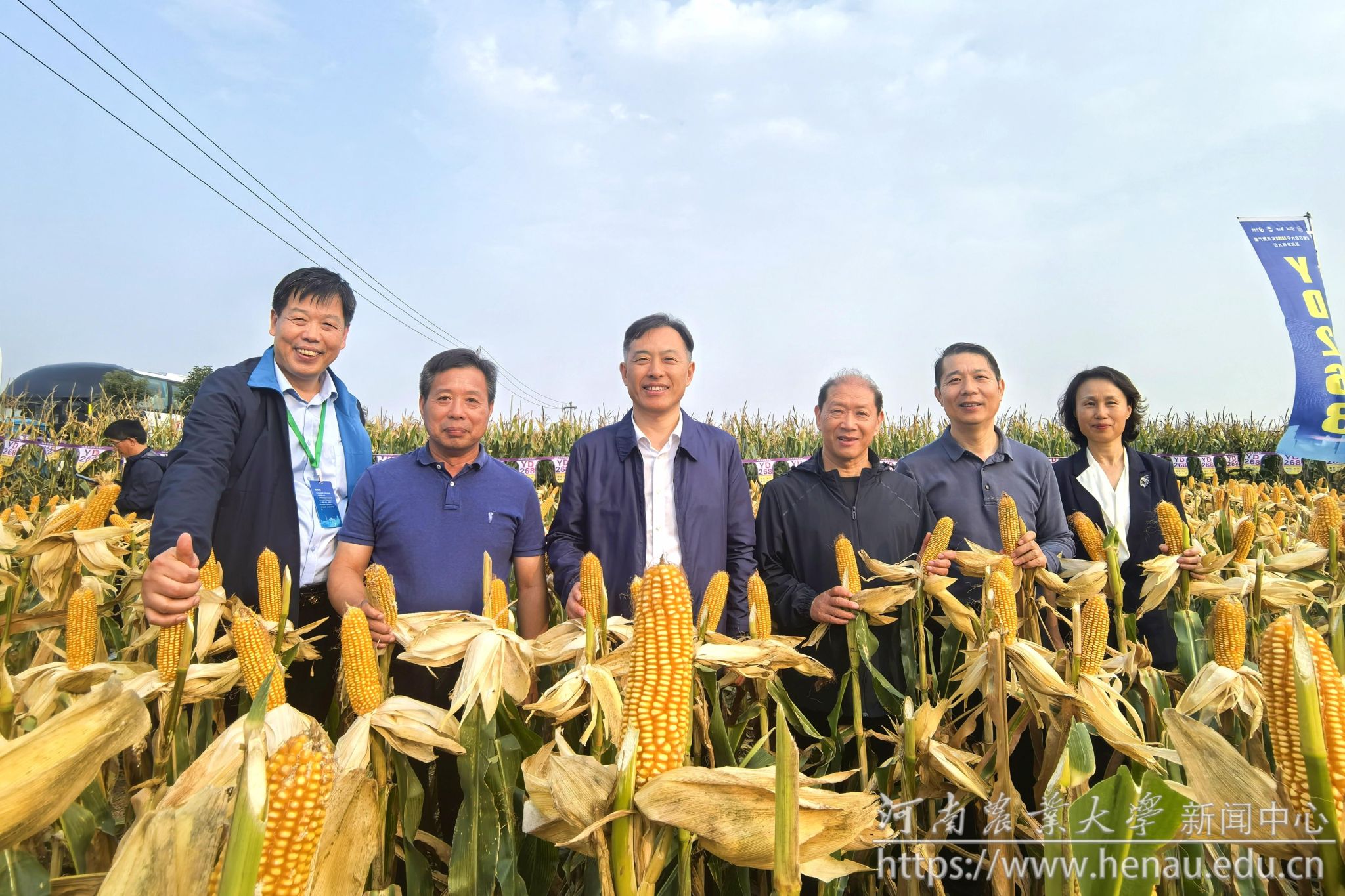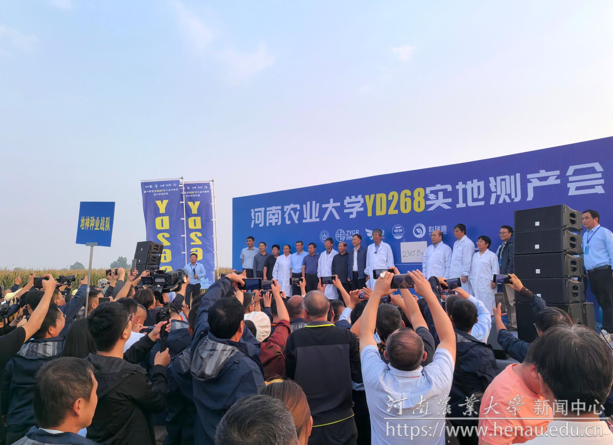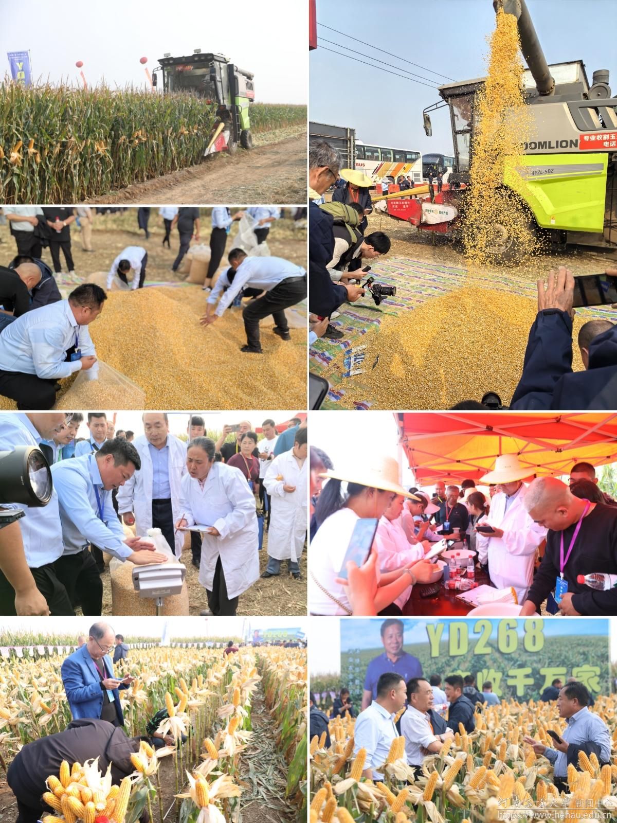本网讯(记者 周红飞 黄璞 图片 秦晓璐 裴辉)金秋时节,正值喜迎丰收和播种希望之时。10月9日,极速快三 选育的玉米新品种YD268实地测产观摩会在素有“豫北粮仓”之称的河南省鹤壁市举行。极速快三 校党委书记李成伟,原校长介晓磊,学术副校长、极速快三 院长王道文,学术副校长、YD268育种团队负责人汤继华出席活动。极速快三 党委办公室、党委宣传部、社会服务处、极速快三 负责人,YD268育种团队成员,河北兆育种业集团有限公司、北京丰度高科种业有限公司、河南黄泛区地神种业有限公司、河南慧博科瑞迪农业科技有限公司主要负责人,以及来自黄淮海玉米主产区8个省区的种子经销商和种粮大户400余名汇聚在此,共同见证YD268的机收籽粒现场测产。
