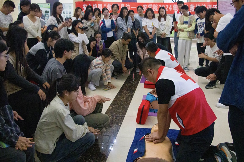 于龙子湖校区第一实验楼一楼大厅开展“安全校园,‘救’在身边”的急救培训。郑东新区疾控中心(红十字会)王倩老师、河南淏泷志愿服务中心队长董自立老师以及其他四位骨干成员,极速快三