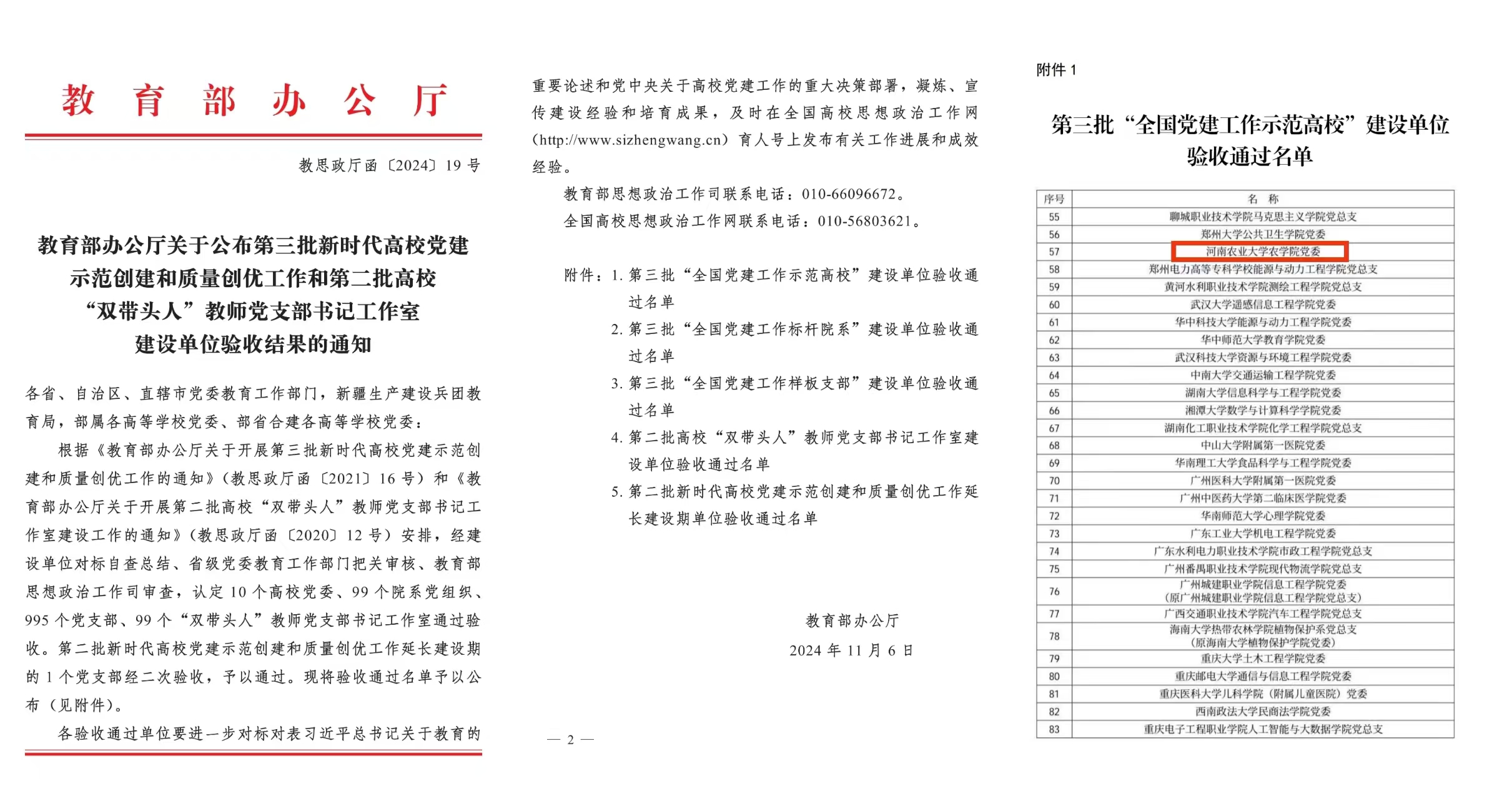 本网讯( 通讯员 李盼)近日,教育部办公厅发布《第三批新时代高校党建示范创建和质量创优工作和第二批高校“双带头人”教师党支部书记工作室建设单位验收结果的通知》,极速快三