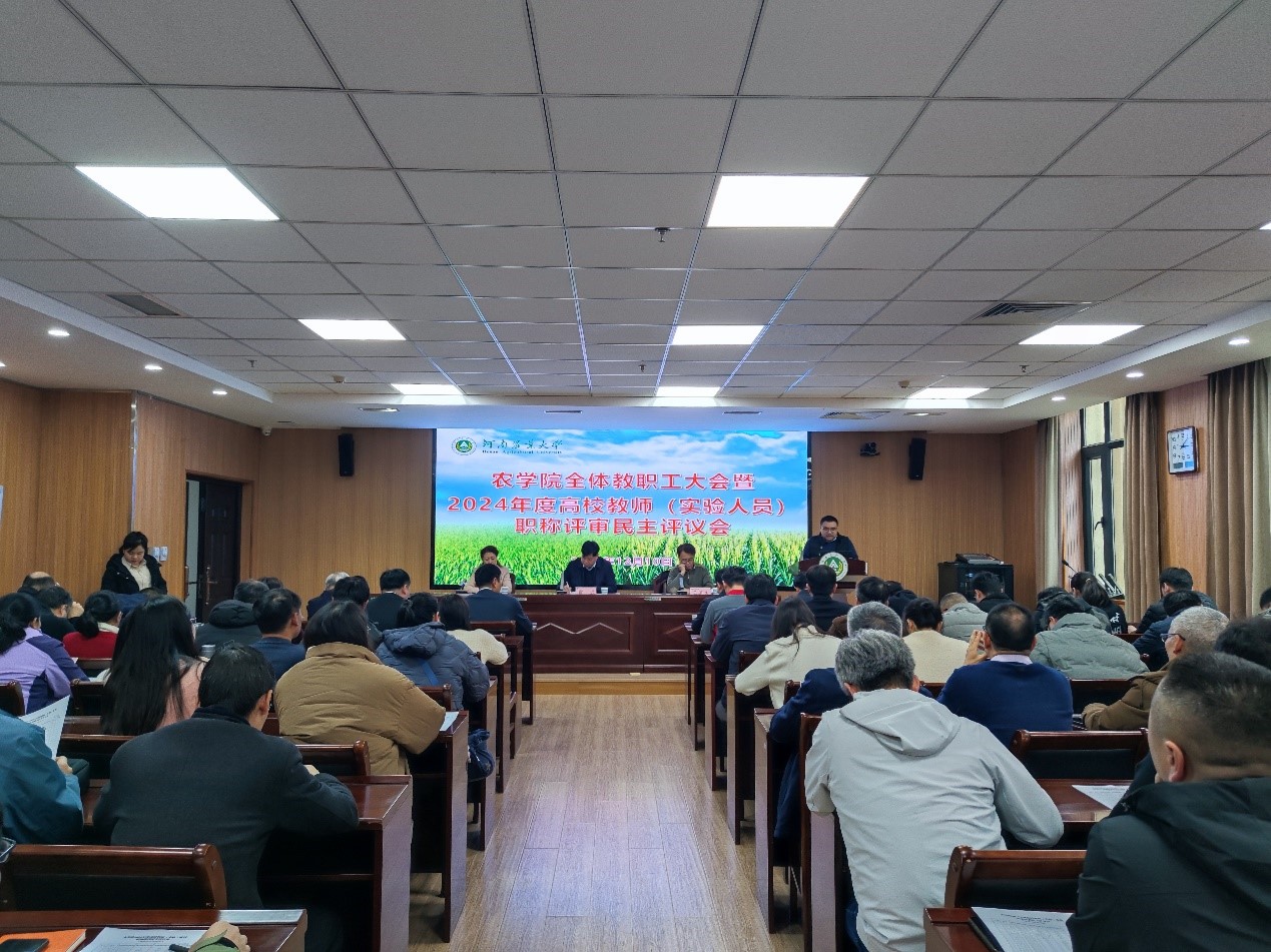 在第一实验楼南321会议室,召开全体教职工大会暨2024年度高校教师(实验人员)职称评审民主评议会。院领导班子成员、极速快三