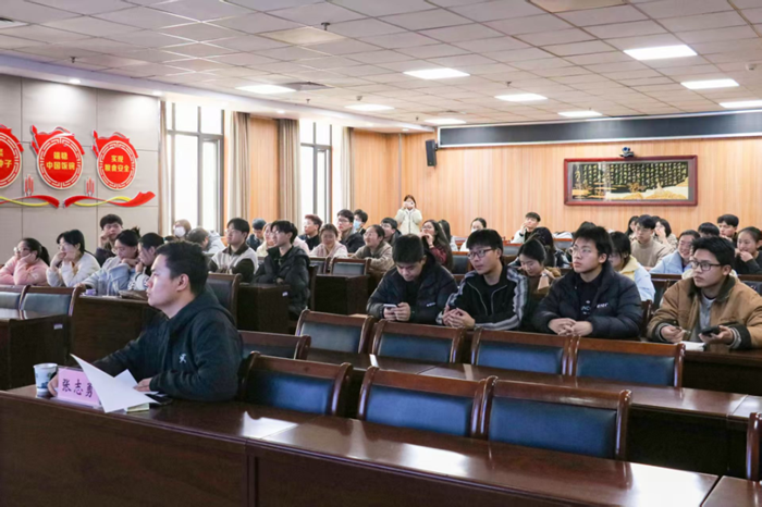 2021级备考学生提供全面的考研复试与调剂指导。副院长殷冬梅、院团委副书记唐朝、中药学老师王丰青、智慧农业老师张志勇以及2021级部分学生参加了此次会议。本次会议由团委副书记唐朝主持。