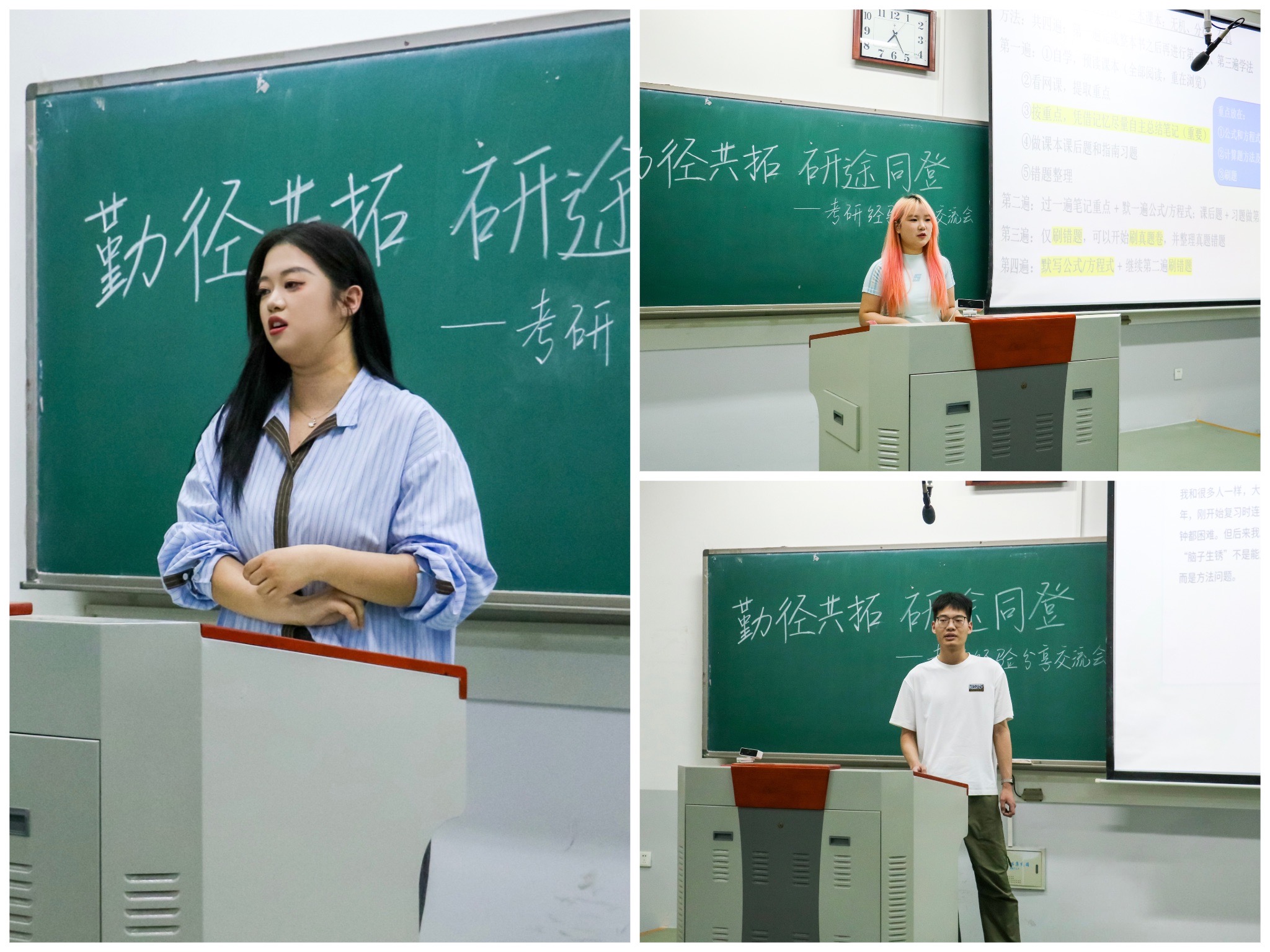 交流会伊始,胡佳乐介绍了与会嘉宾及活动流程。三位分享人结合自身经历,围绕择校策略、复习规划、心态调整等核心问题展开讲解。李庆萌强调院校选择和学习方法的重要性,并分享了相关经验;代明宇从认知、规划及心态一一讲解,为极速快三