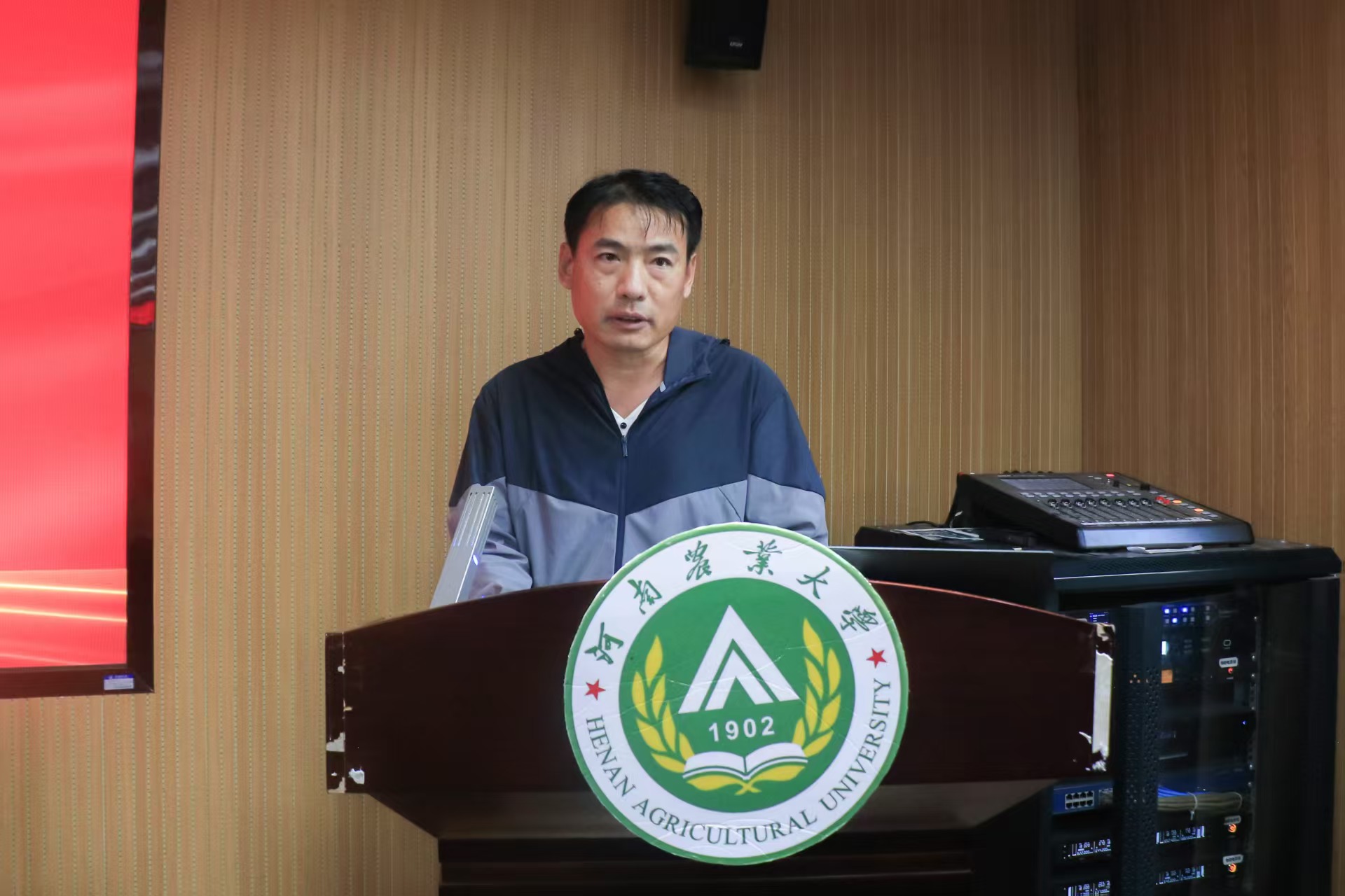 表彰环节结束后,优秀教师代表唐建卫上台发言。他结合自身小麦遗传育种工作,分享2019年加入极速快三