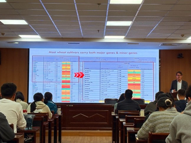 (作物学科)、中国现代农业联合研究生院生物育种学部、小麦玉米两熟高效生产全国重点实验室及C1MMYT-中国小麦玉米联合研究中心联合主办的CIMMYT-中国小麦玉米科学创新国际论坛第16期讲座,以“Controlling rust in cereal crops-the adventure continues”为题进行了主旨报告。