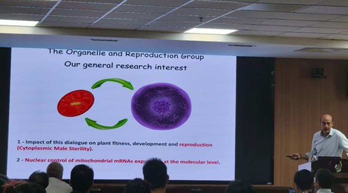 Hakim Mireau教授长期致力于植物线粒体功能及其基因表达调控的研究,在Science、PNAS、Nature Plants和Nucleic Acids Research 等国际知名期刊发表一系列研究论文,受到学界的高度认可。他不仅在基础科学研究中做出了重要贡献,还积极推动线粒体生物学领域的技术创新和理论发展,是该领域公认的权威专家。本次报告以“Fertility restorers and homologs in agriculture”为题,深入介绍了植物线粒体与细胞核之间复杂的协同作用,以及线粒体在植物生长发育中的关键角色,重点阐述了其课题组在植物细胞器基因表达调控机制和杂种优势的分子基础研究方面的突破性成果。