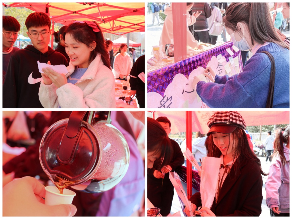 活动开始,工作人员为参与活动的师生介绍了妇女节的由来以及女性养生的相关知识。在现场的知识竞答环节,大家纷纷抢答,多位女生获得了鲜花及小礼品。同时,现场还有社团自制的免费红糖茶供大家品尝。在工作人员的指导下,女同学和女教职工们纷纷在便签上写下自己的愿望,贴在展板上。期间,也有部分男生驻足展板前,浏览便签上的内容。