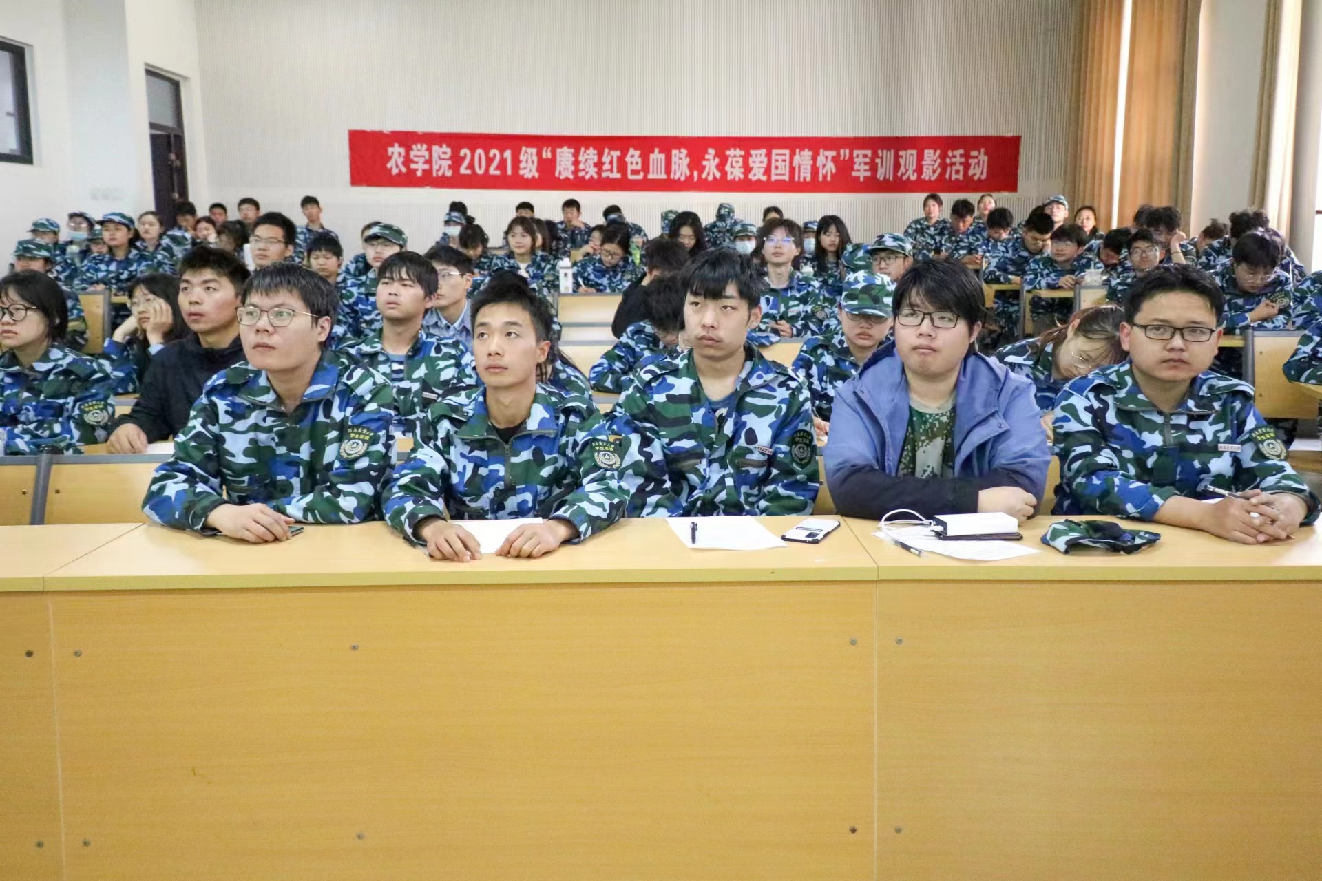 于龙子湖校区C202、D110、D102教室举办《1950他们正青春》军训观影活动,院团委副书记唐朝,全体承训教官及极速快三