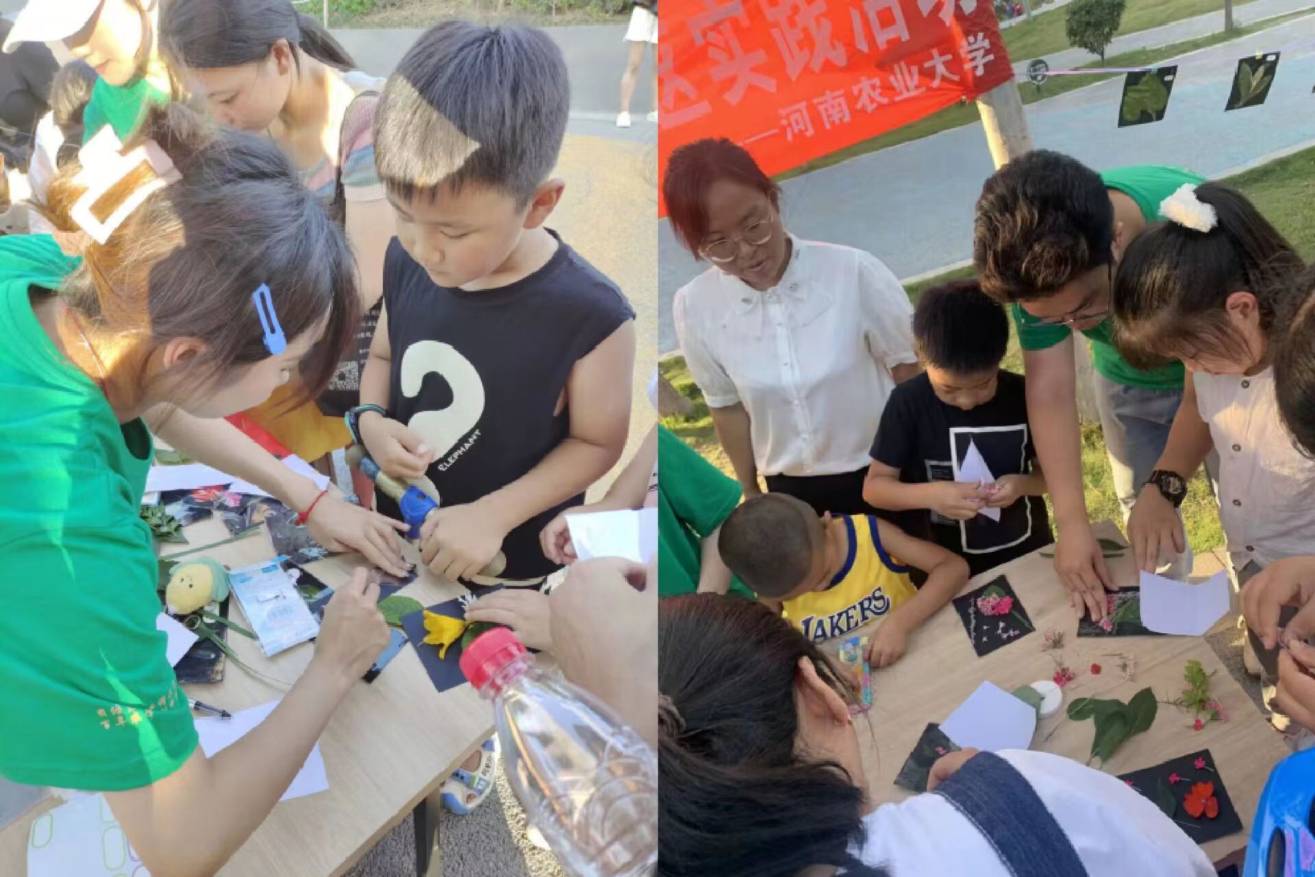 志愿者们教孩子制作标本