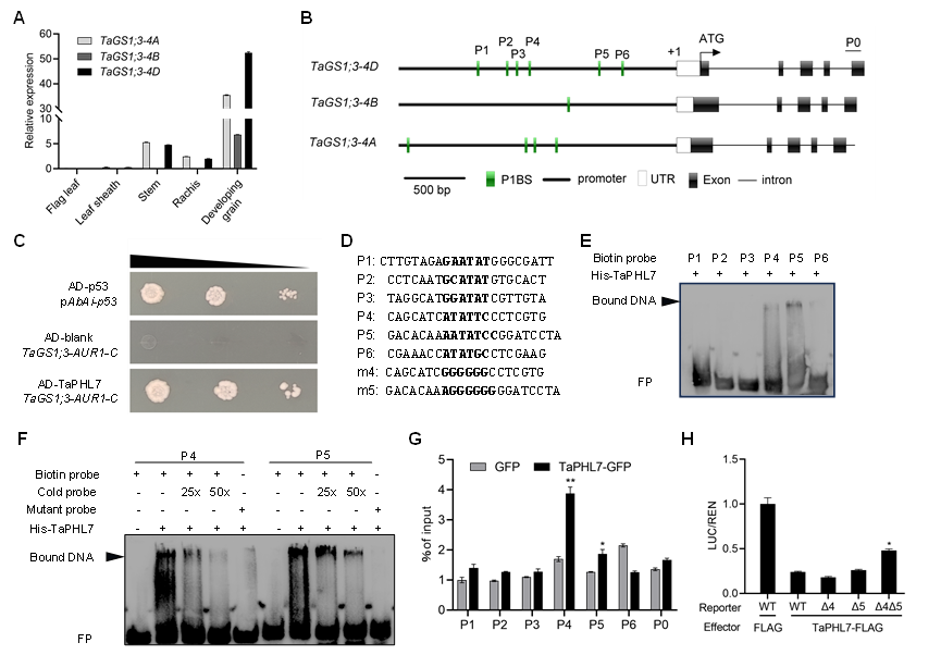 1.TaPHL7 通过结合TaGS1;3-4D启动子抑制其转录活性