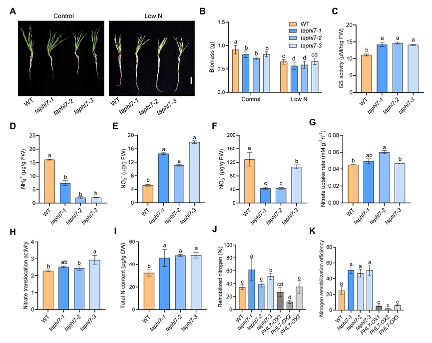 图4:TaPHL7 负调控氮代谢